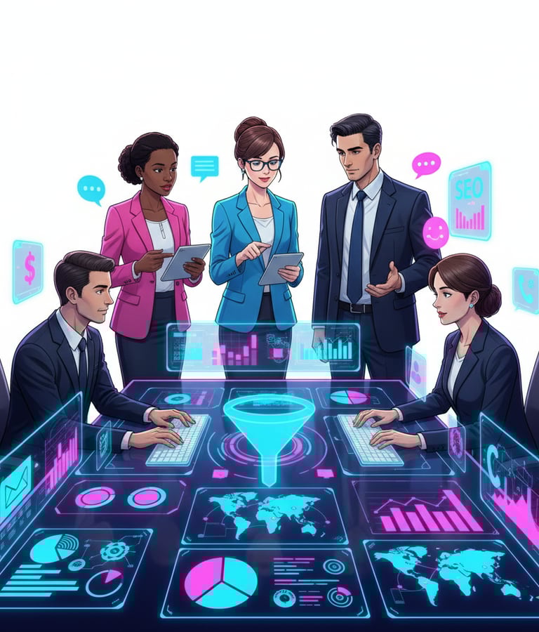 Diseñamos embudos y estrategias comerciales completas, desde la creación de campañas de captación y generación de demanda en los principales canales de búsqueda, hasta la implementación de sistemas inteligentes de telefonía VoIP y canales automatizados de WhatsApp que permiten dividir y gestionar las llamadas y mensajes entrantes de clientes y pedidos de manera eficiente, optimizando la productividad de tu equipo comercial y asegurando que cada lead reciba la atención adecuada en el menor tiempo posible.